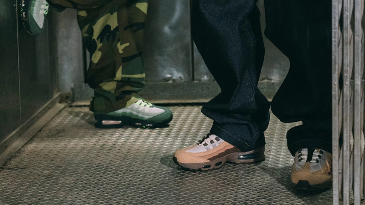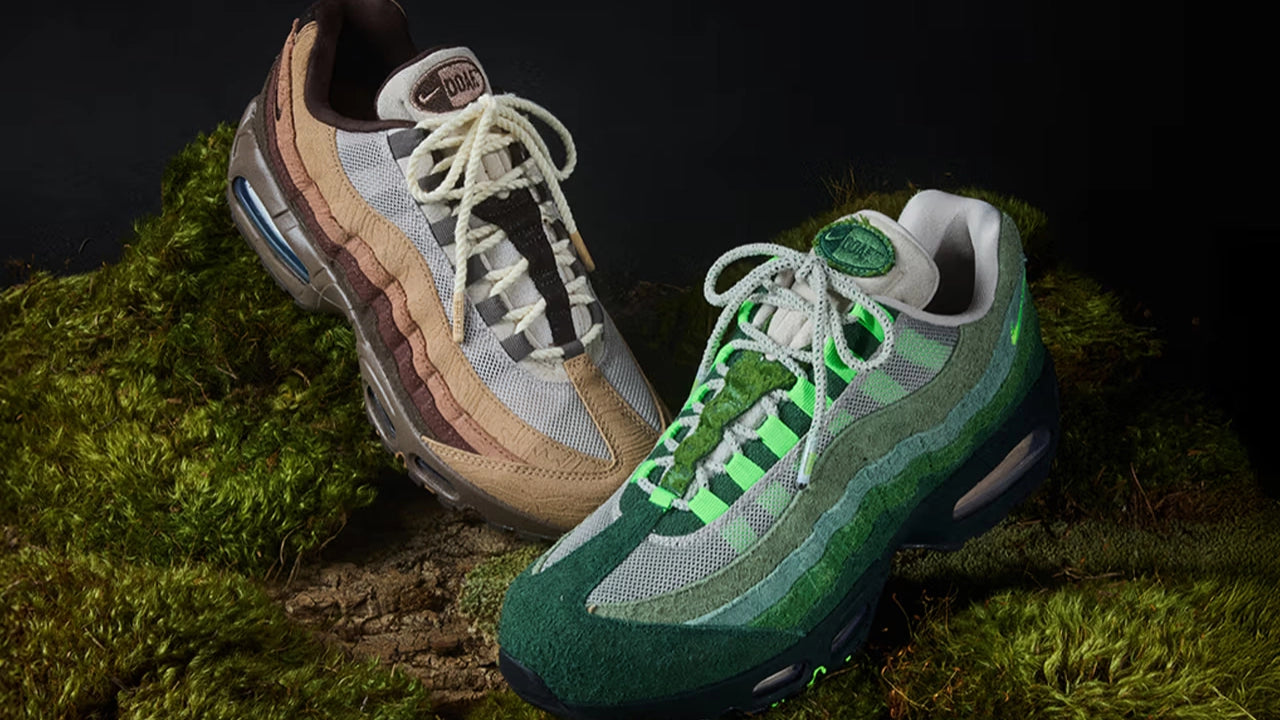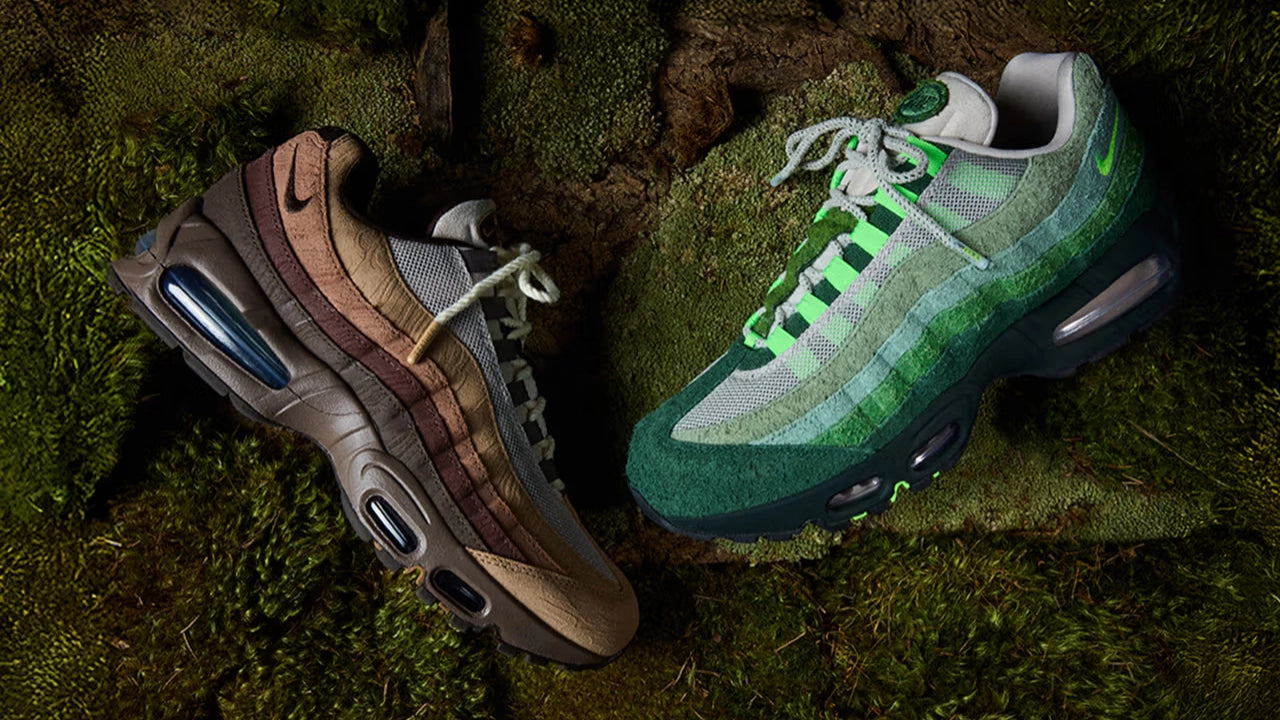 March Madness is underway, and Nike is celebrating the University of Oregon with two new Air Max 95 colourways that draw on the Pacific Northwest and the state's timber legacy. Released through the student-athlete-centered Ducks of a Feather program, these pairs pay tribute to the school and its signature court at Matthew Knight Arena.