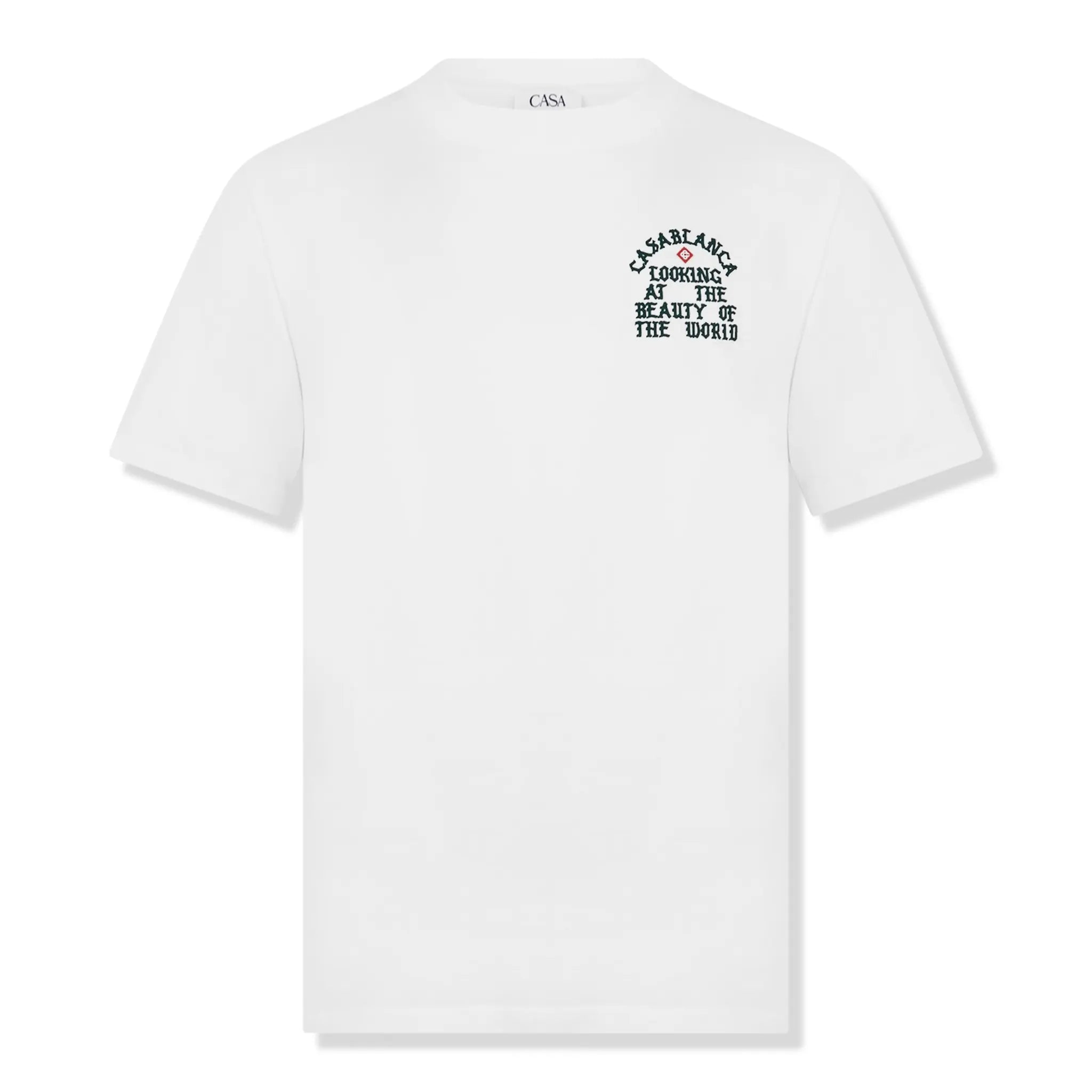 With its sleek black background and vivid pool-inspired print, the Casablanca Pool Black T Shirt blends luxury and carefree style. It is made of quality soft cotton for all-day comfort. It has a timeless yet contemporary fit that goes well with both smart and casual attire because it was made to be versatile. This t-shirt is ideal for people who value luxury fashion with a relaxed attitude because it makes a statement without being overly dramatic.